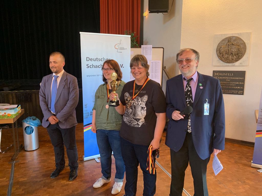 Doch Maria, Ulla und unsere abgegebene Gastspielerin Sabine konnten der Siegerehrung beiwohnen und die Medaillen sowie den Pokal in Empfang nehmen.